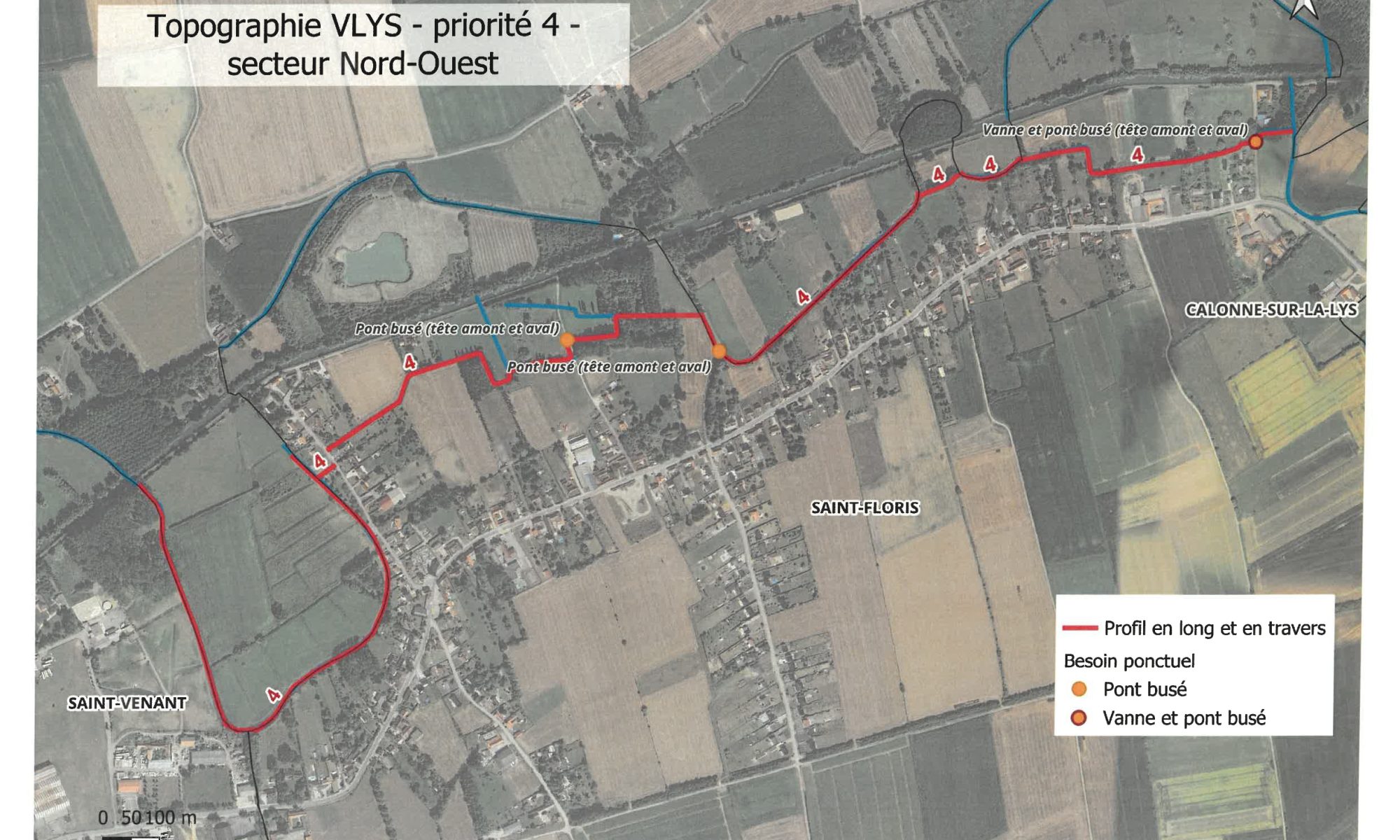 Dans le cadre du projet de restauration de la Vieille Lys à Saint-Floris, des levés topographiques seront réalisés entre mi-décembre 2025 et janvier 2026 par le cabinet de géomètres-experts BOGAERT & GOZE.