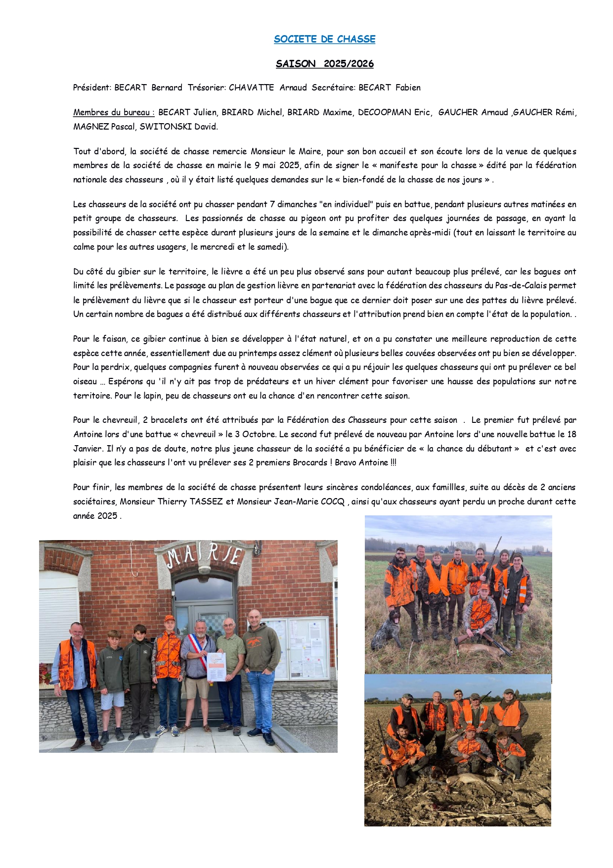 - Autres membres : Bécart Julien, Briard Michel, Briard Maxime, Decoopman Eric, Gaucher Arnaud, Gaucher Rémi, Magnez Pascal, Switonski David.